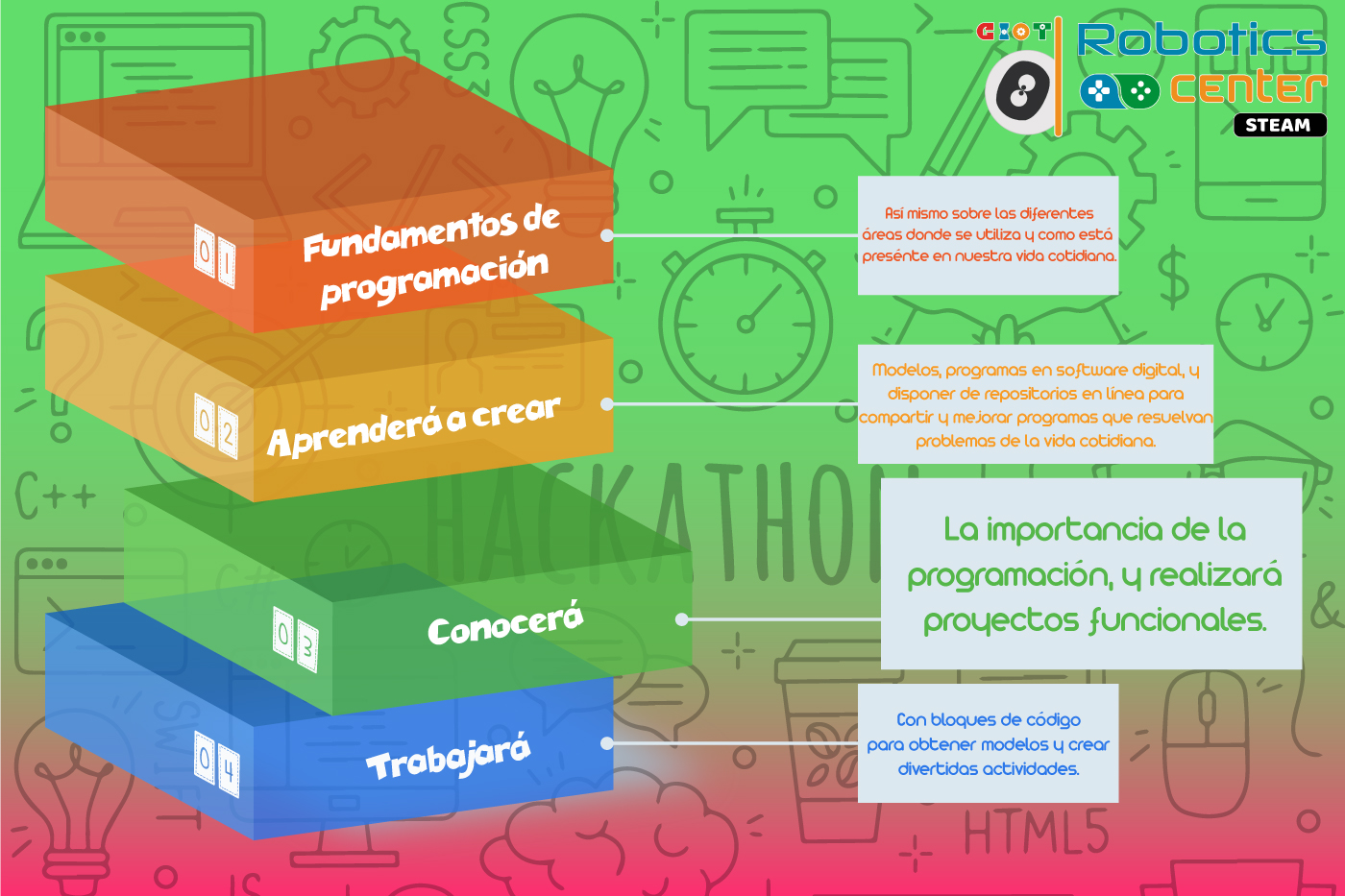 Aprender programación informática es aprender a escribir y hablar el idioma de las computadoras, la programación es el lenguaje del futuro, gracias a la programación es posible tener videojuegos, computadoras y sitios web; la programación es muy importante en el actual, permitiendo dar soluciones a problemas, desde aquellos muy sencillos, hasta aquellos son muy complejos y parecen inposibles, con procesos más sencillos al alcance de los niños mediante talleres o planes escolarizados.